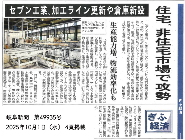 2025年10月03日岐阜新聞に当社のプレカットライン更新に関する記事が掲載されました
